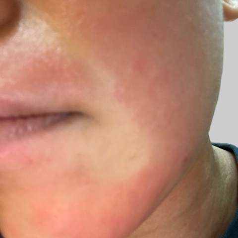 「昼食久しぶりに大好きなラーメンを食べていたら、口の下が赤くなる。本人全く気づかずに美味しそうに食べ、その後遊んでいるうちに赤みは消えたので、どれくらい赤かったかは分からず」
