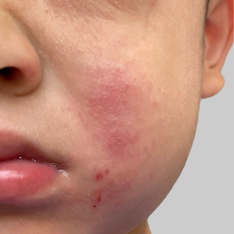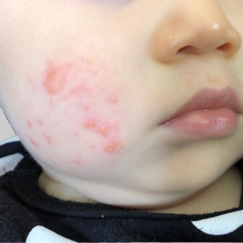 炎症により皮膚が赤くなり、見た目にも大きな影響を与えます。頬、額、口のまわりなどに出やすく、かゆみを伴うことが多いです。