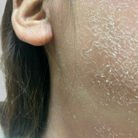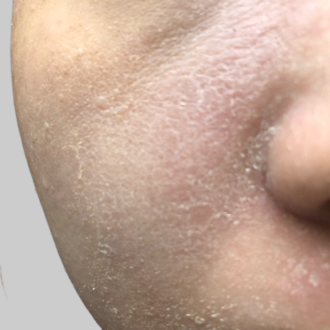 「顔も冬になると剥け始め分泌液が、、、やっと最近皮膚が剥けるくらいに、、、でも生理前やホルモンの乱れ?で悪化します」