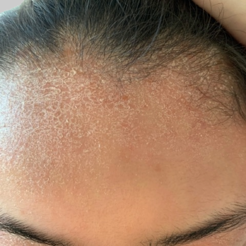 「おでこ ◯◯◯◯で治療中だけれども良くならない… ここまで酷いと外には出れない… ステロイドは強くしたくないけど辛いです…」