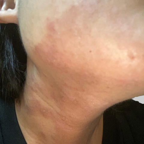 「顔の調子は良くなったけど、汗でかぶれて首が皮のむけた状態になりました…赤みは引いてるからここさえ耐えれば!という気持ちで保湿頑張ります」