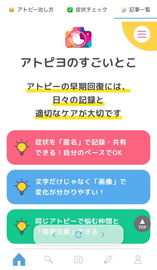 アトピヨのアプリでは、みんなが実際に試したケアや工夫が数多く投稿されています。「これでかゆみが落ち着いた」「この方法が自分に合っていた」など、リアルな体験からヒントが見つかるかもしれません。ぜひ参考にしてみてください。
